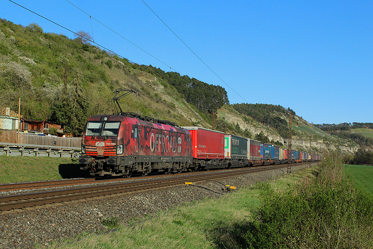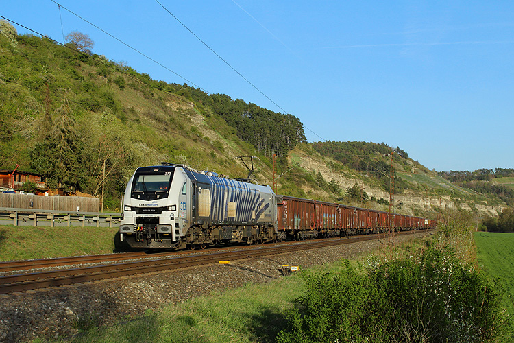 Am Samstagmorgen 12.04.2025 ging es wieder nach Retzbach - LTE 193 967 mit KLV in Richtung Würzburg. |