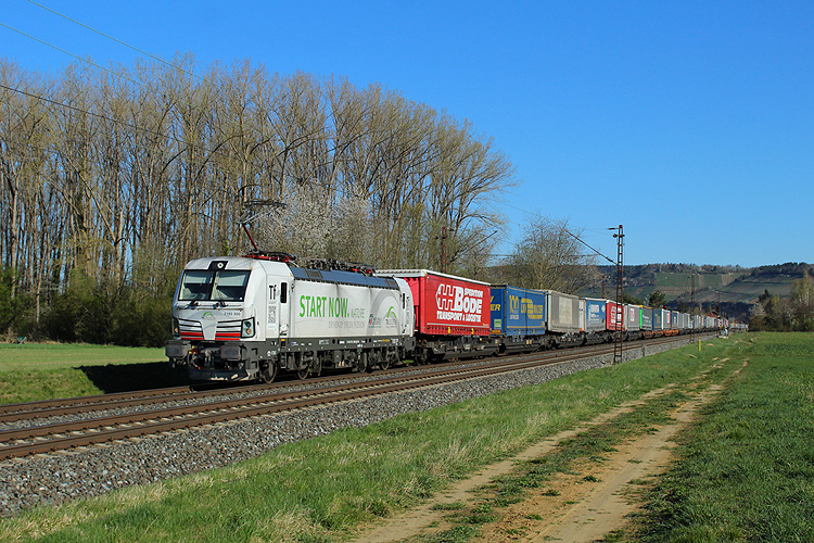 Vor der Weiterreise nach Basel ging es am Montagmorgen 07.04.2025 noch kurz nach Retzbach - TXL 193 300 mit dem KLV Lübeck - Verona. |
