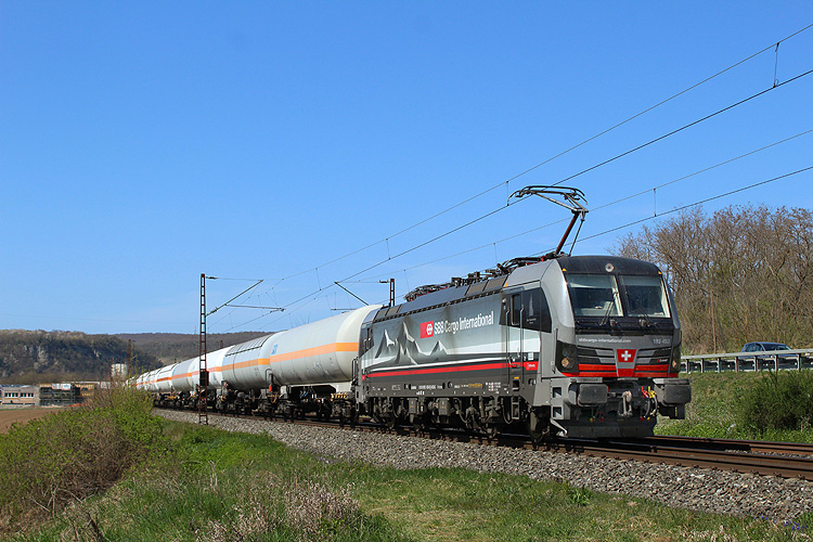 Auch auf der Heimfahrt wurde wieder im Maintal Station gemacht. So war ich am Freitagmittag 11.04.2025 wieder zurück in Karlstadt - SBB Cargo 193 453 mit dem Gaskesselzug Offenbach - Münchsmünster. |