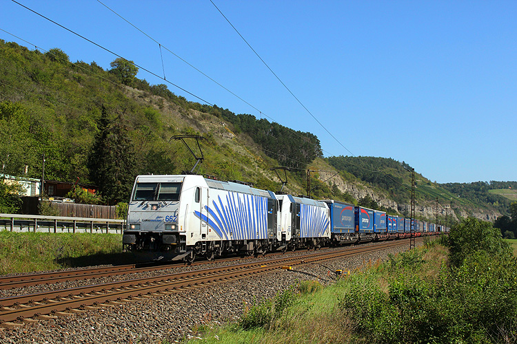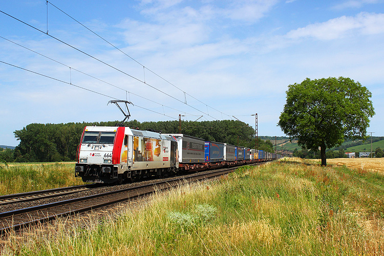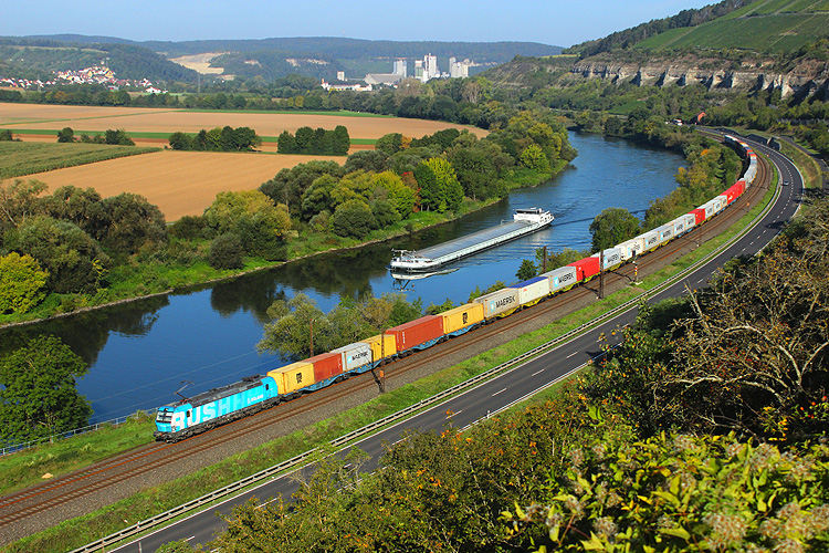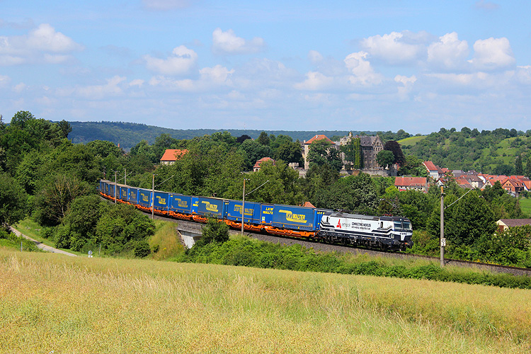 Höhepunkt waren hier gleich beide "Offroad" TXL 193 555+234 mit 186 104 und Transitalia-KLV in Richtung Würzburg. |
