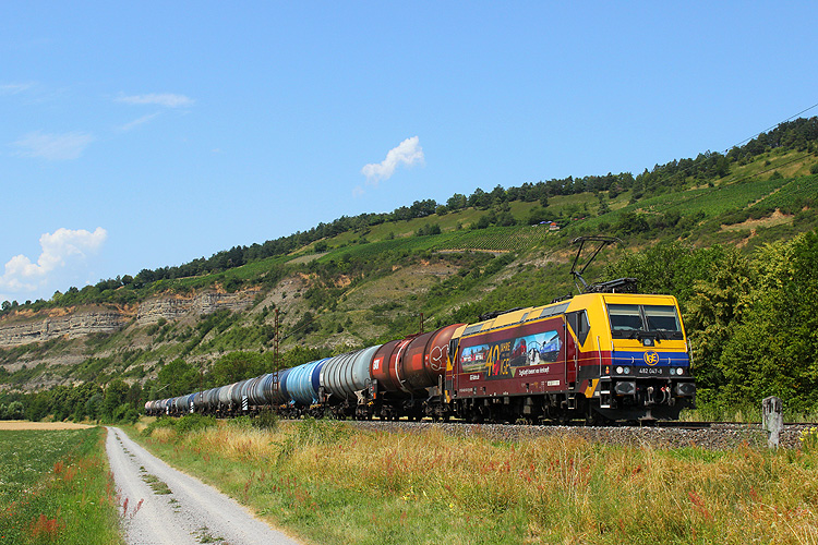 Bei Karlstadt bekam ich RTB 193 094 mit Gaskesselzug in Richtung Gemünden vor die Linse. |