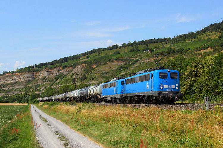 Am 10.07.2023 an gleicher Stelle - 159 241 mit Kesselzug in Richtung Würzburg. |