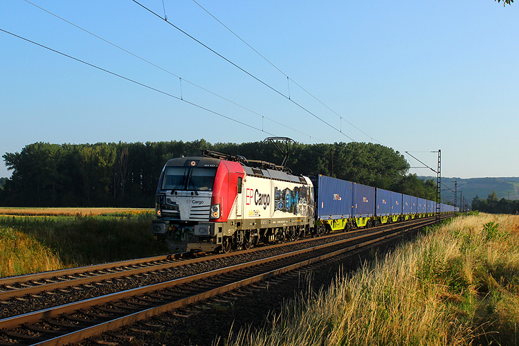 EP Cargo 193 823 fuhr mit einem reinrassigen Unit45-Containerzug in Richtung Würzburg. |
