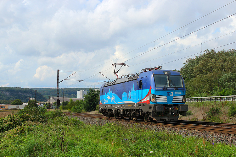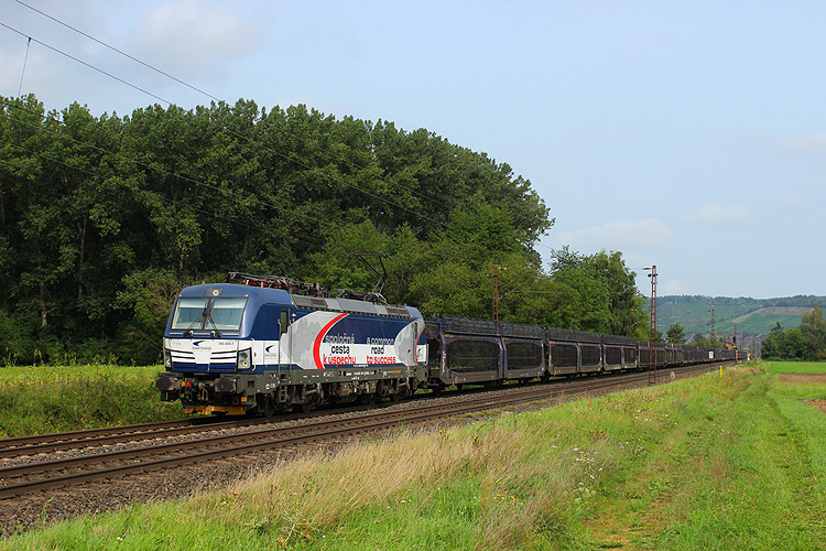 Am Nachmittag ging es wieder nach Karlstadt, CD Cargo 393 002 war solo in Richtung Würzburg unterwegs. |