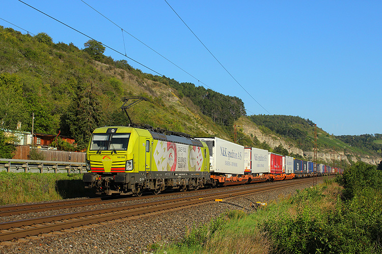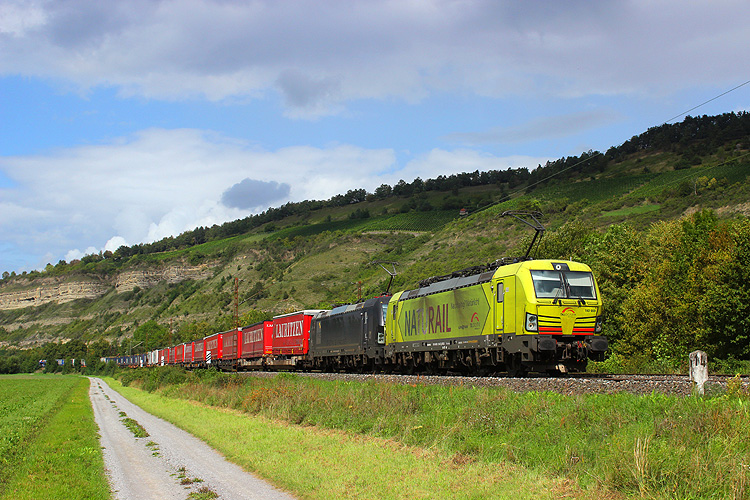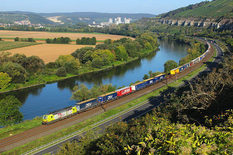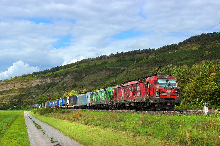 Am folgenden Morgen ging es früh in die Weinberge zwischen Karlstadt und Himmelstadt - TXL 193 551 mit dem KLV DGS 43141 Lübeck - Verona. |