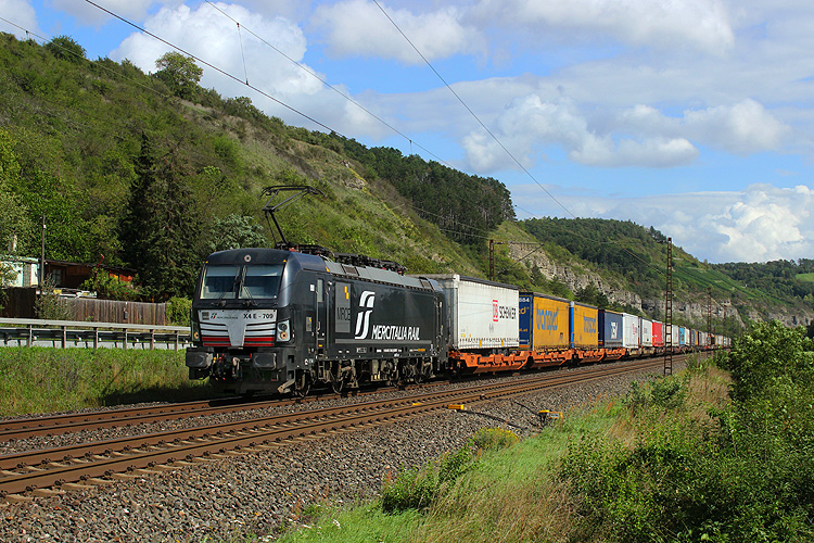 Zum Nachmittag ging es dann wieder an die südliche Einfahrt von Karlstadt - Mercitalia 193 709 mit dem KLV KT 42150 Verona - Rostock Seehafen. |