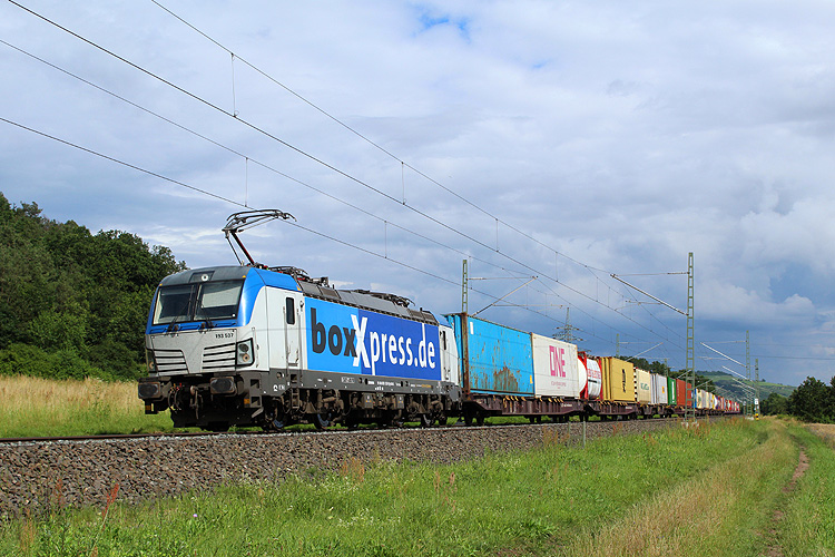 Boxxpress 193 115 fuhr mit einem Containerzug in Richtung Würzburg. |