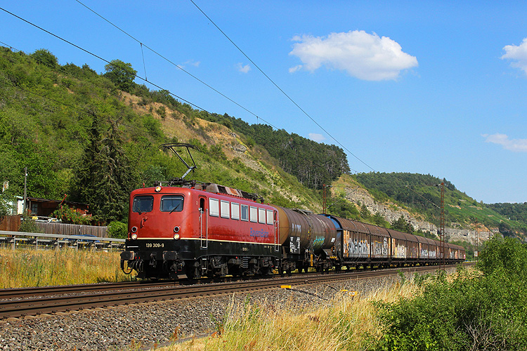 Bayernbahn 139 287 hing vor dem Henkelzug DGS 59971 Langenfeld - Gunzenhausen. |