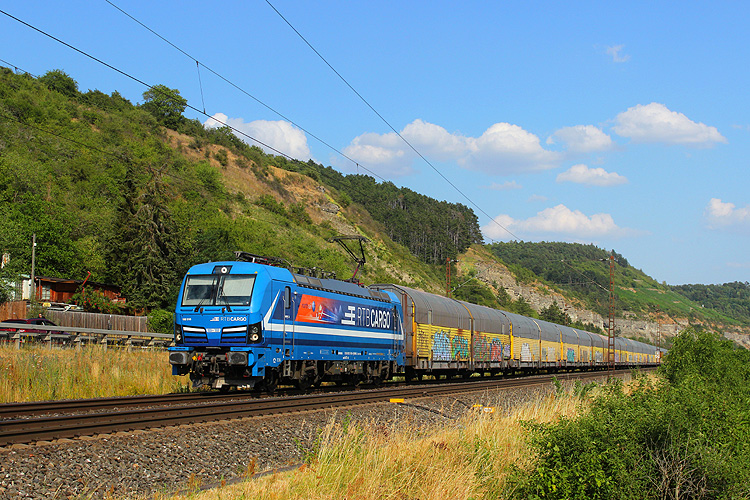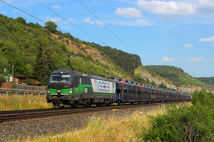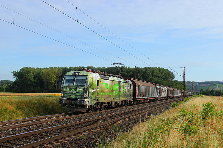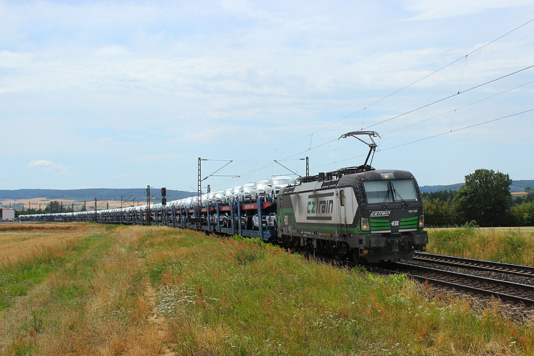 CZ Train 193 725 hatte einen Milsped-Autozug in Richtung Gemünden am Haken. |
