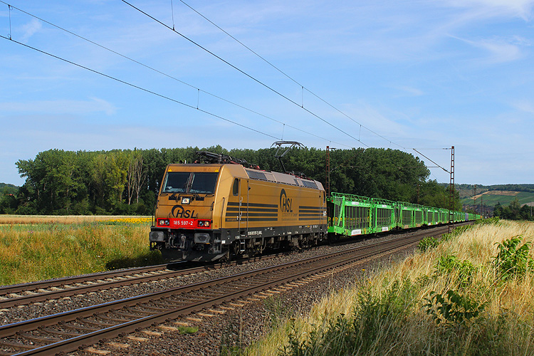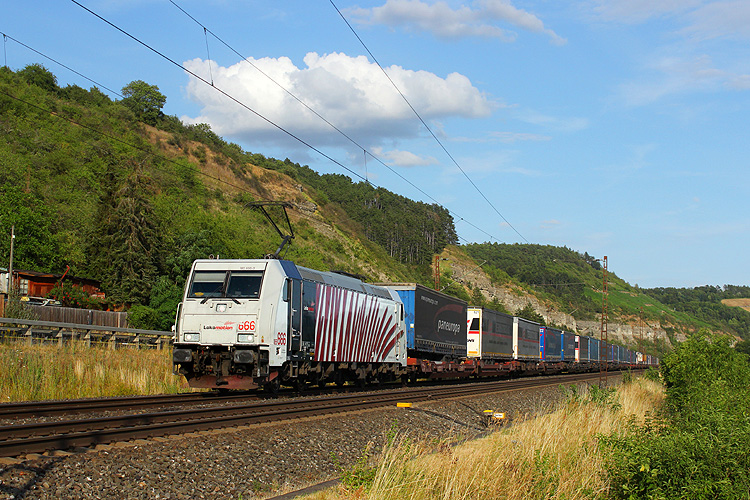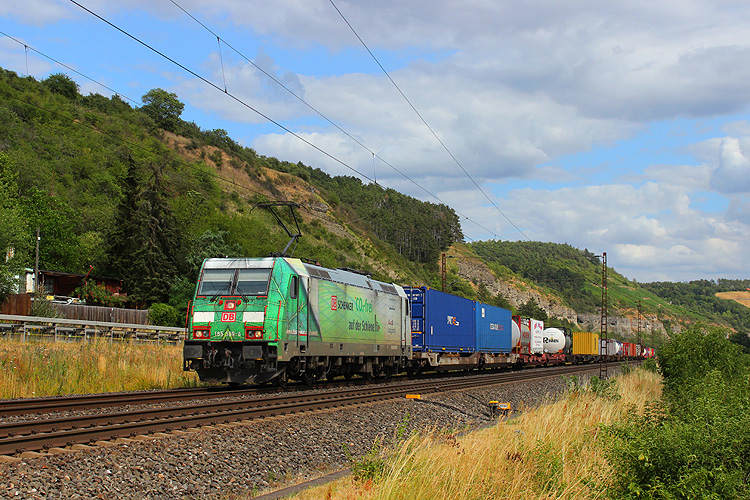 185 389 fuhr mit einem KLV in Richtung Gemünden. |