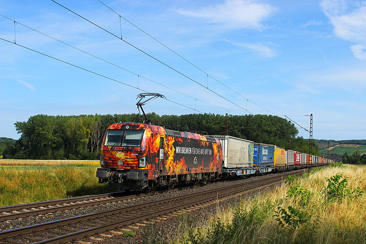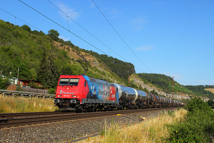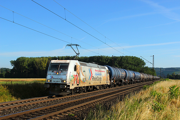 RTI 185 545 rollte mit einem Kesselzug ebenfalls in Richtung Gemünden. |