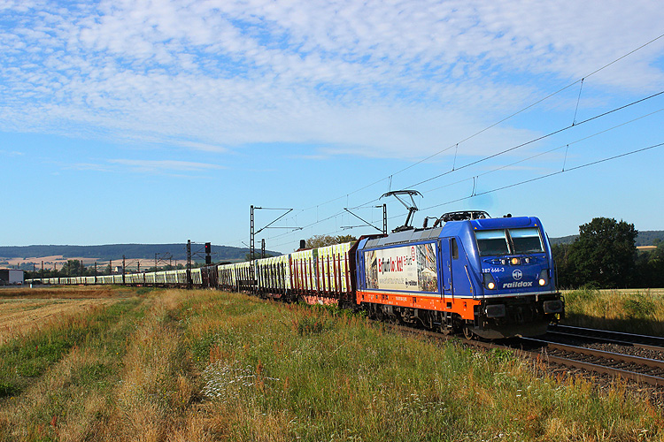 Raildox 187 666 fuhr mit einem Stallinger-Holzzug in Richtung Gemünden. |