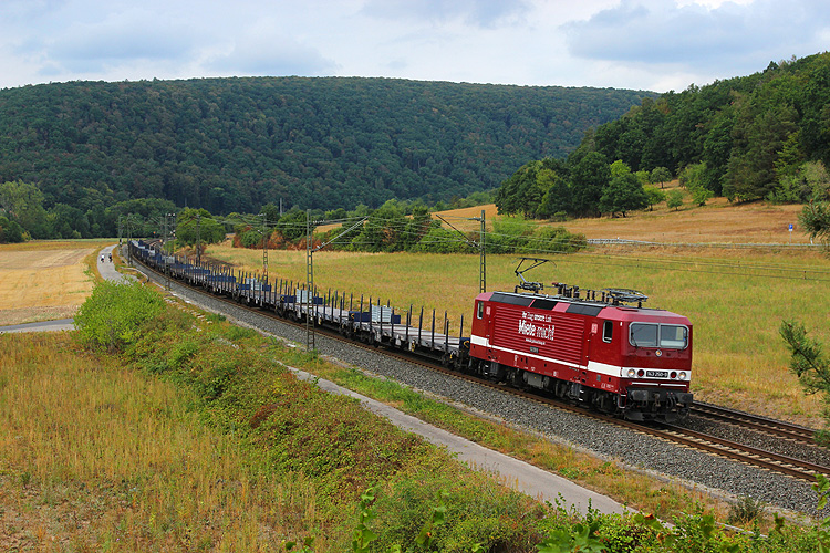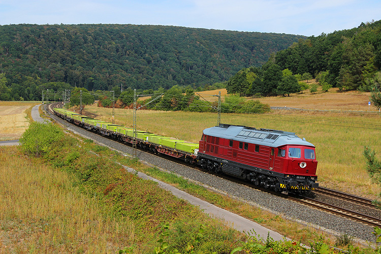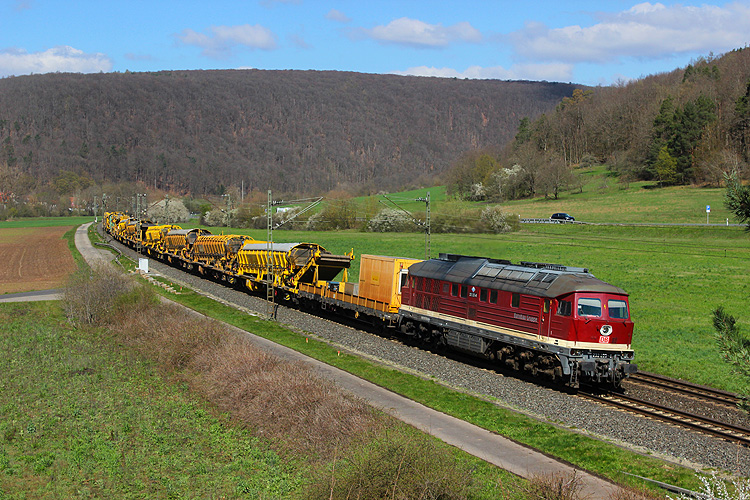 Bahnbau 232 223 hatte hingegen einen stattlichen Bauzug am Haken. |