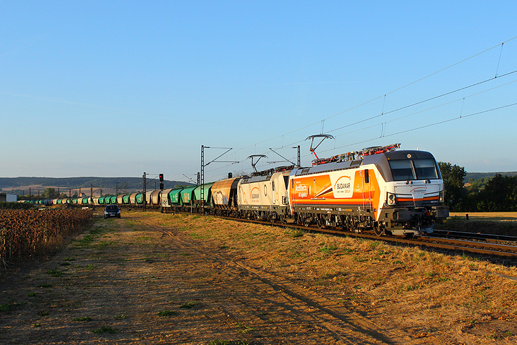 Am Samstag 27.08.2022 startete ich in meinen 3-wöchigen Jahresurlaub. Wie in den Jahren zuvor stand als erstes Ziel wieder das Maintal auf dem Programm. Am Nachmittag in Harrbach angekommen war das Budamar-Doppel 383 213 + 193 964 mit Getreidezug in Richtung Würzburg das erste Highlight. |