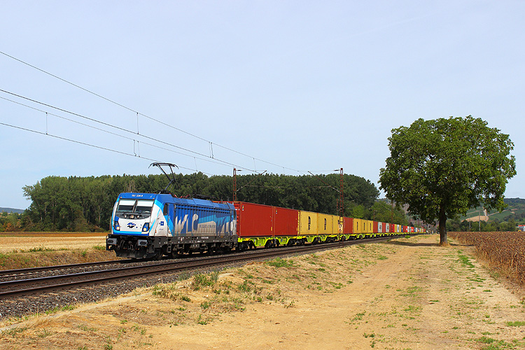 WLC 187 324 fuhr mit einem Containerzug in Richtung Würzburg. |