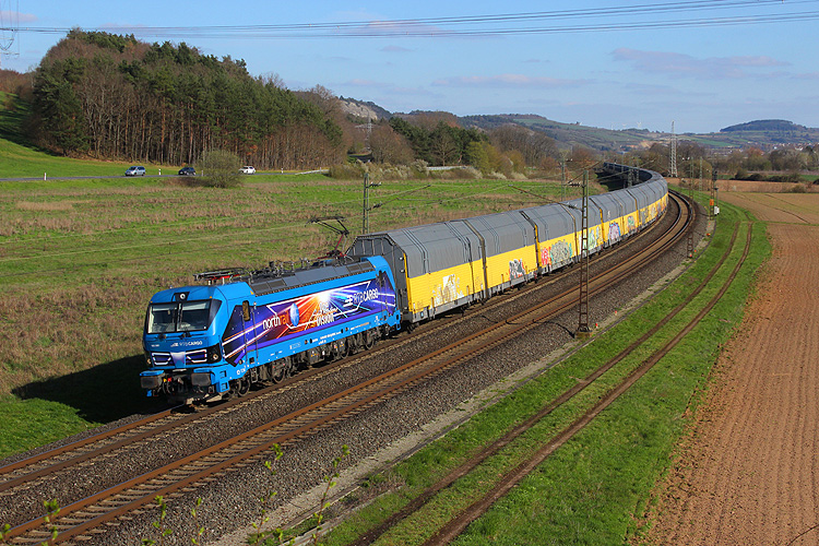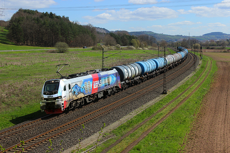 EP Cargo 383 060 war mit einem Kesselzug in Richtung Gemünden unterwegs. |