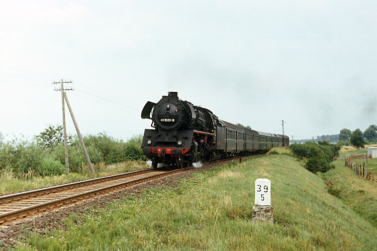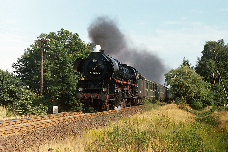 41 1289 versucht mit P 6454 Magdeburg - Oebisfelde bei Böddensell Verspätung aufzuholen, 02.07.1982. |