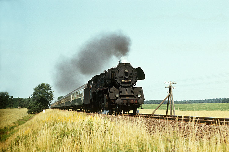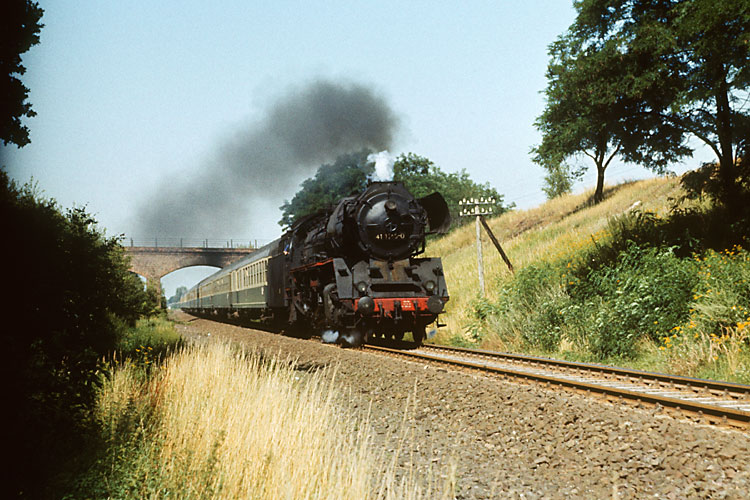 Von der Brücke aus aufgenommen - 41 1231 rollt mit dem Dg 53724 Oebisfelde entgegen, 10.08.1985. An diesem Tag sah ich die letzte Oebisfelder 41 zum allerletzten Mal im Einsatz. |