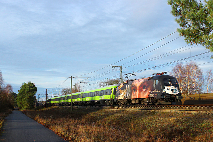Am 07.01.2023 hing die "Beethoven" 182 510 vor dem Flixtrain FLX 76333 Wiesbaden - Berlin. |