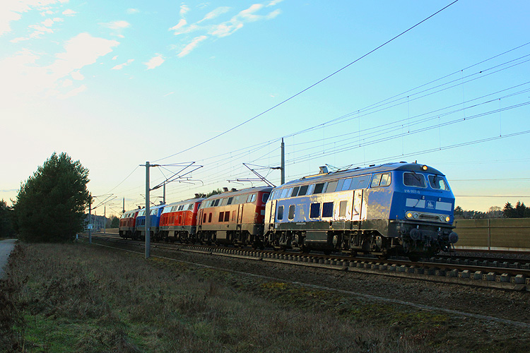 Am 28.01.2023 kam ein 218-Lokzug aus Hamburg - Lehrte, Press 218 057 zog DB 218 835+389, dann Press 218 056 und noch eine DB-218. |