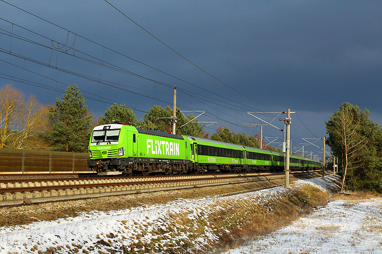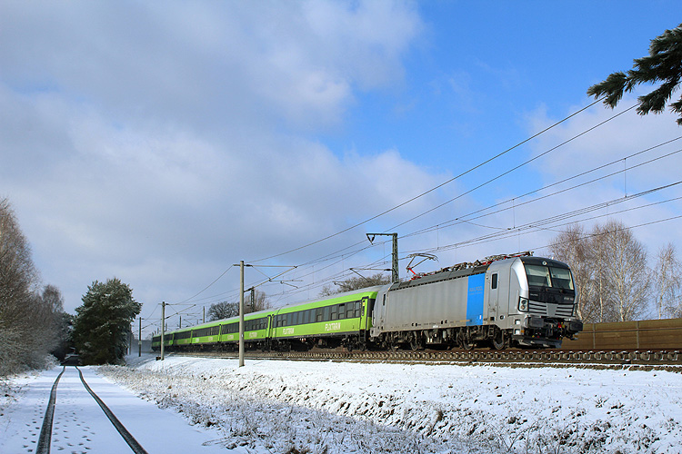 Am 11.03.2023 wurde es dann doch noch kurz winterlich. RP 193 102 hing vor dem Flixtrain FLX 1249 Wiesbaden - Berlin. |