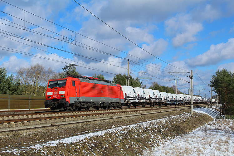 Als am Nachmittag 189 018 mit dem VW-Crafterzug GAG 49472 Wrzesnia - Seelze kam, war die weiße Pracht schon wieder weitgehend dahin geschmolzen. |
