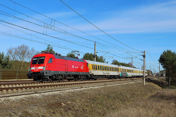 Am 22.02.2023 fuhr Railadventure 2016 902 mit Kuppelwagen westwärts. |