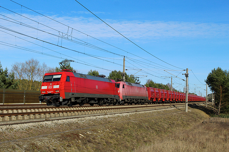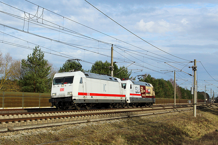 Am 16.02.2024 fuhren die beiden IC-Werbeloks 101 013+110 ohne Zug in Richtung Wolfsburg. |