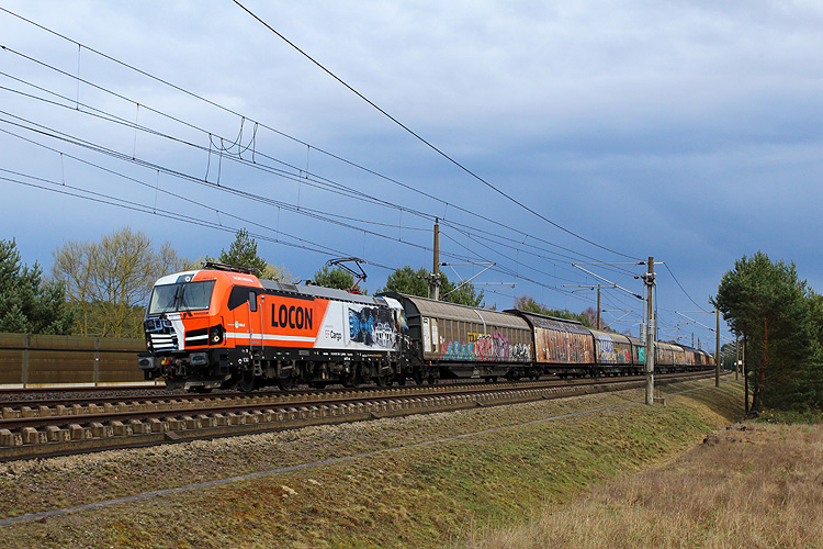 Am 30.03.2023 hatte Locon 192 060 die üblichen H-Wagen als DGS 90976 Schwedt - Köln am Haken. |