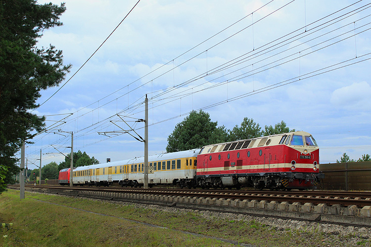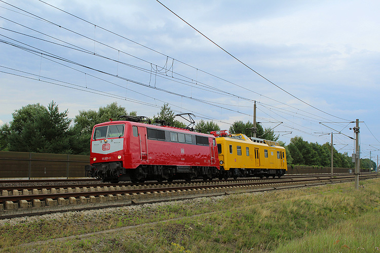 Am 09.08.2024 gab es Museumslok 119 158 mit einem Meßzug in Richtung Stendal zu sehen. Am Zugschluß hing 101 056, die mit dem Zug eine Stunde später auf der HGV mit dem Meßzug wieder westwärts fuhr, 119 158 war nicht mehr dabei. |
