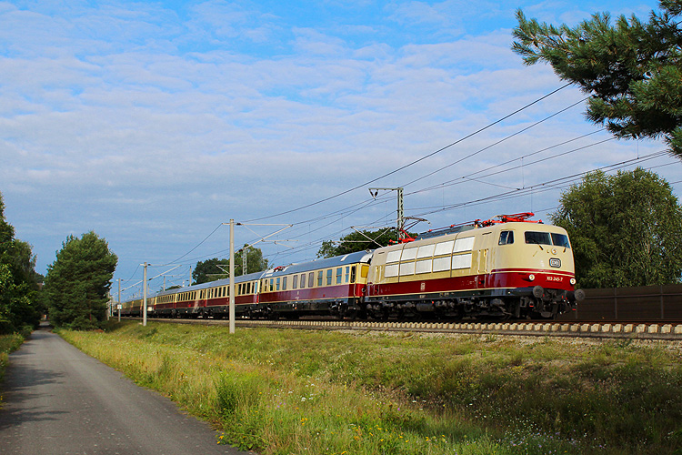 Am 05.08.2023 kam 103 245 mit dem "Rheingold" DPF 340 Göttingen - Binz. |
