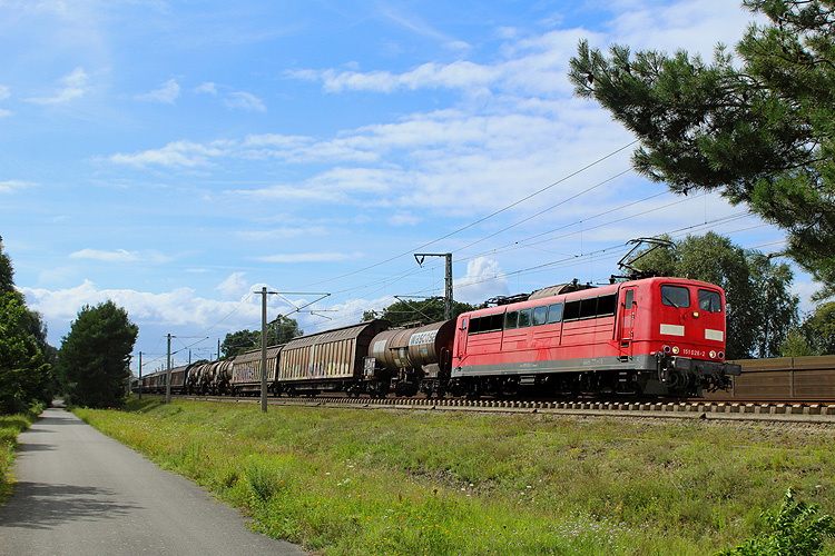 Im Sommer 2023 wurde Stendal wegen Bauarbeiten auf der Magdeburger Strecke im Nahgüterverkehr direkt von Seelze aus bedient. Am 06.08.2023 hing 151 026 vor dem Nahgüter EZ 51218 Seelze - Stendal. |