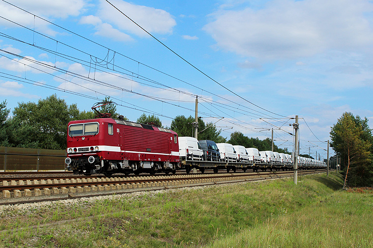DR 243 650 kam mit dem BLG-Citroen/Peugeot-Transporterzug Frankfurt/Oder - Bad Bentheim. |