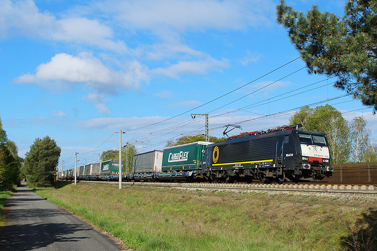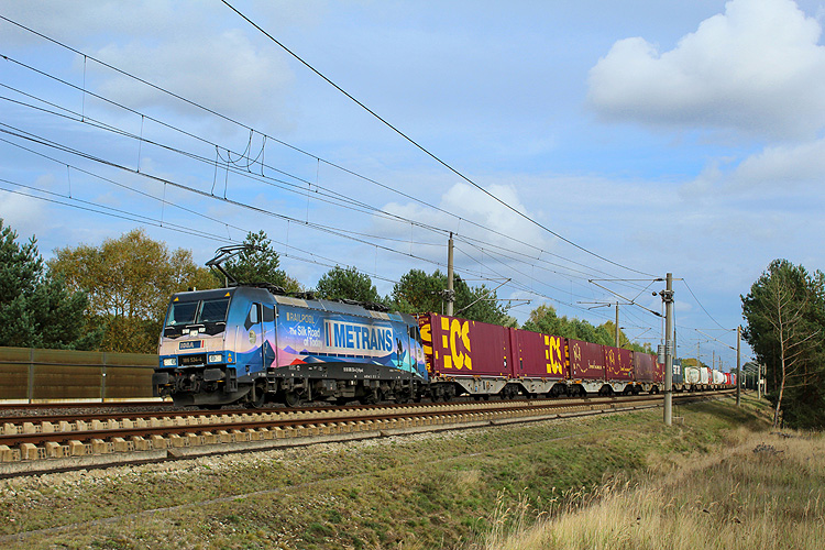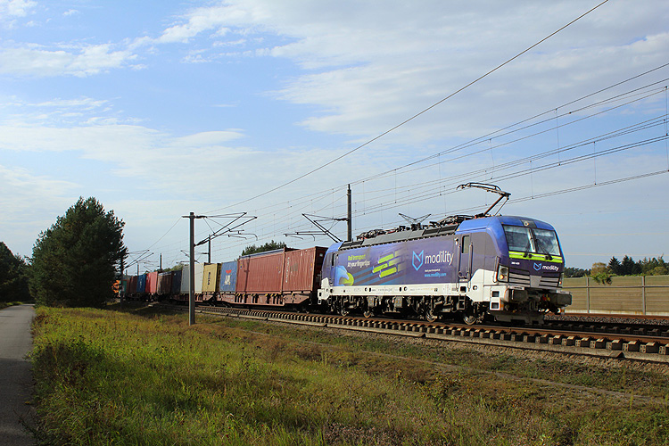 Am 13.10.2023 fuhr Metrans 383 425 "Modility" mit einem Containerzug in Richtung Stendal. |