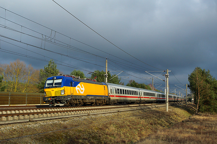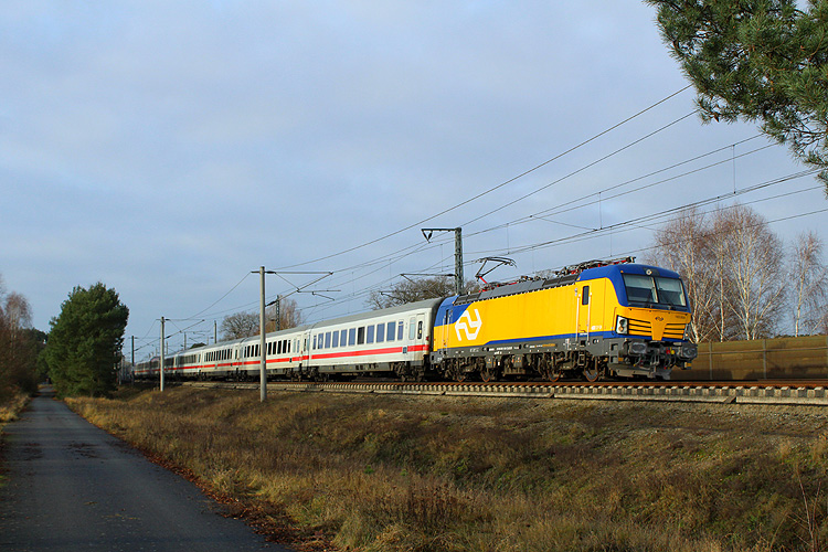 Nun haben die Vectron der niederländischen Staatsbahn die DB-Baureihe 101 vor den IC Amsterdam - Berlin abgelöst, NS 193 934 am 16.12.2023 mit dem IC 141. |