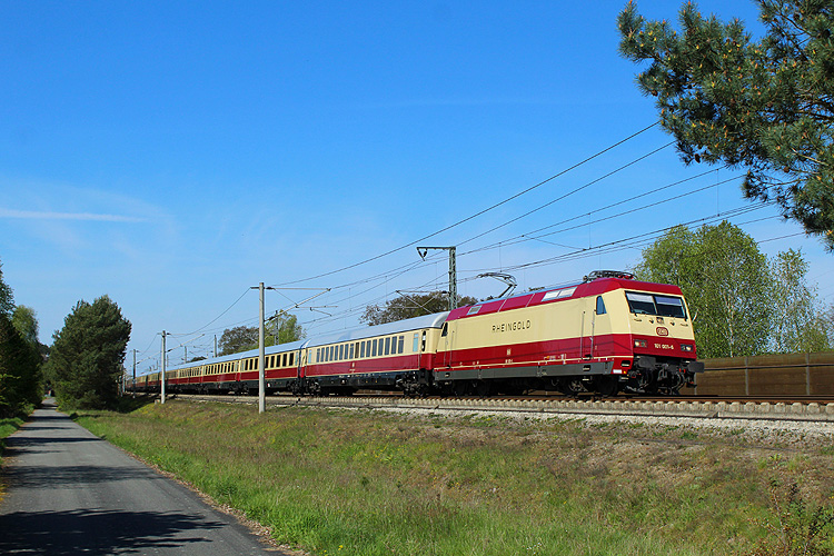 Am 27.04.2024 überführte DB Museum 101 001 einen leeren Rheingold-Park von Dortmund nach Cottbus. |