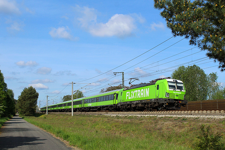 Im Frühling 2024 wurde der Flixtrain FLX 1249 Mainz - Berlin eingelegt, am 30.03.2024 hing 193 508 davor. |