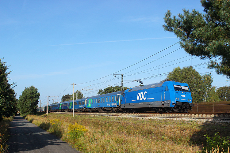 Auch der Nachtzug der schwedischen Staatsbahn EN 345 Stockholm - Berlin mußte während der Bauarbeiten den Umweg über Lehrte in Kauf nehmen, wie hier RDC 101 071 am 02.09.2024. |