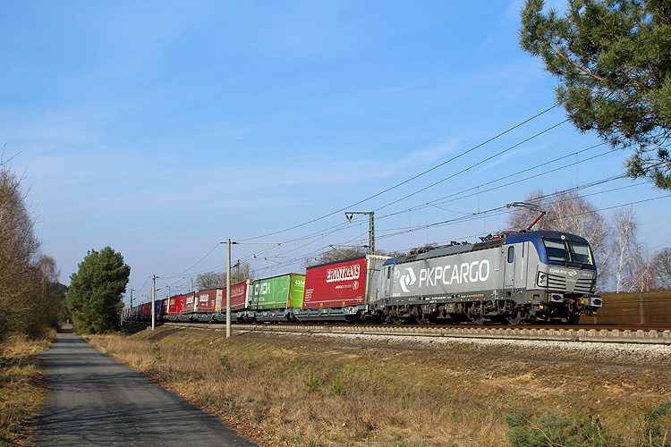 Am 23.03.2025 fuhr PKP Cargo 193 510 mit einem Erontrans-KLV in Richtung Stendal. |