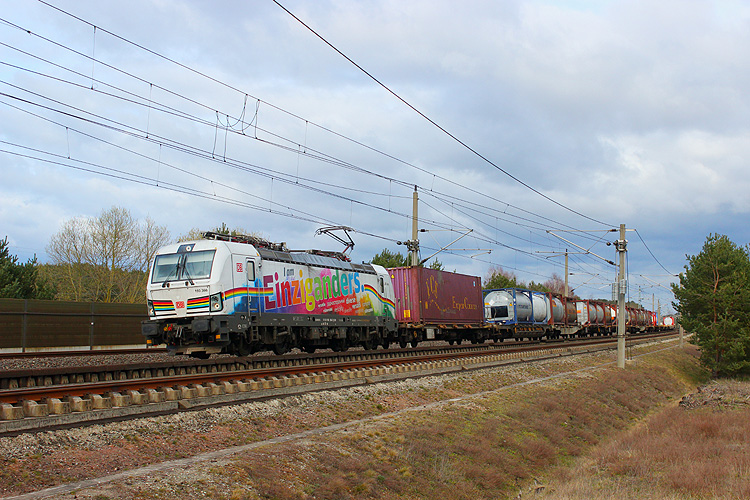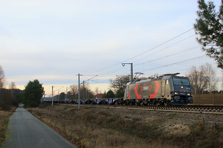Am 14.11.2020 wurde der Mischer EZ 51070 Seddin - Seelze über die HGV umgeleitet, bespannt mit "I am European" 193 362. |