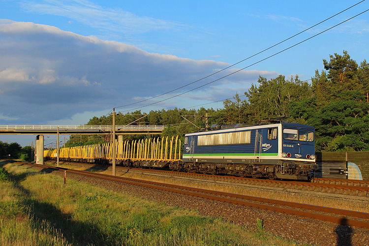 Am 28.06.2023 kam Press 155 048 mit einem leeren Holzzug aus Niedergörne angefahren. |