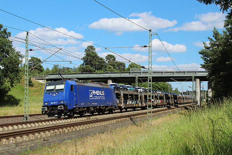 Am 09.06.2024 fuhr Rhenus 186 268 mit dem BLG-Fiatzug Tychy - Antwerpen westwärts. |