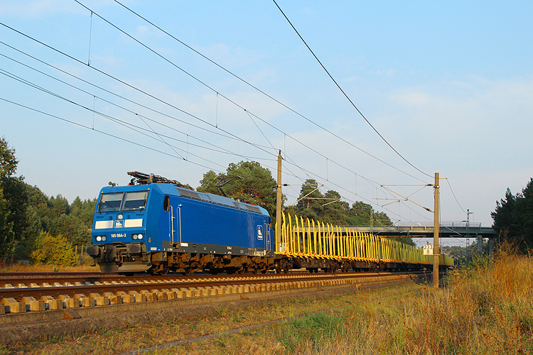 Press 185 064 folgte mit einem leeren Holzzug. |