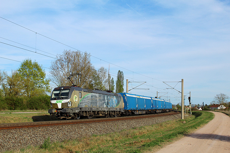 SETG 193 692 "Wood Works" war mit dem Containerzug DGS 59988 von Hof nach Hamburg unterwegs. |