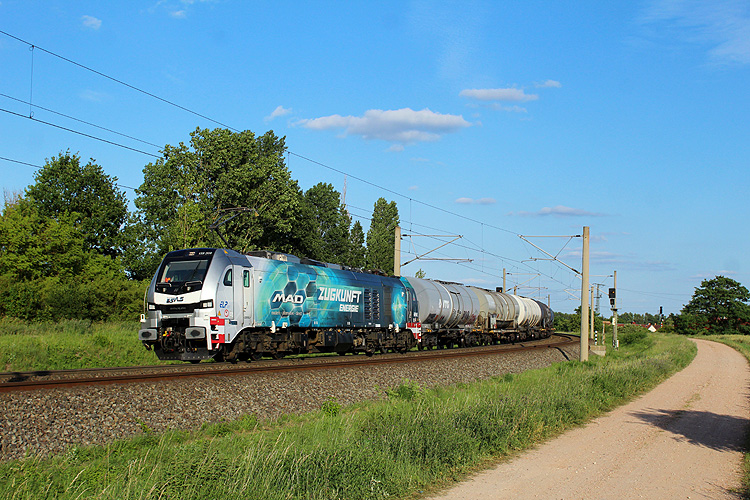 Am 03.05.2023 war ich nach langer Zeit mal wieder in Stendal auf Tour. Unter anderem fuhr Infraleuna 192 004 mit einem Kesselzug in Richtung Wittenberge. |