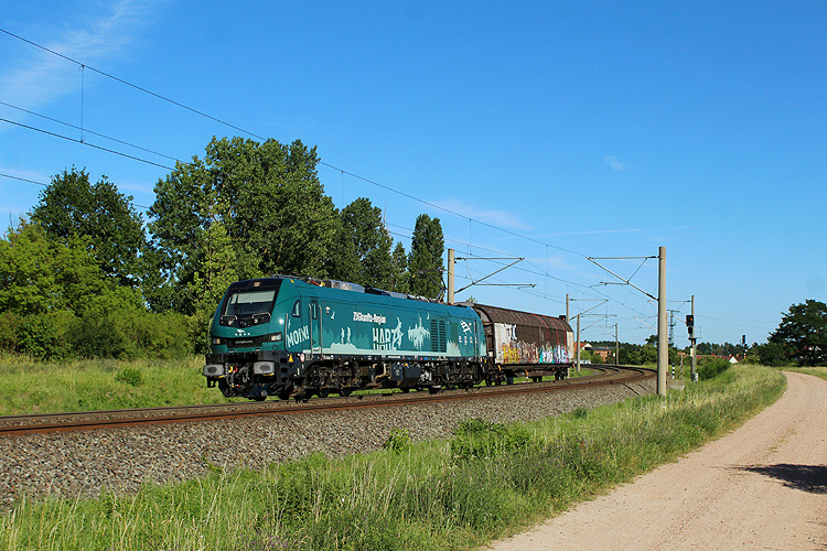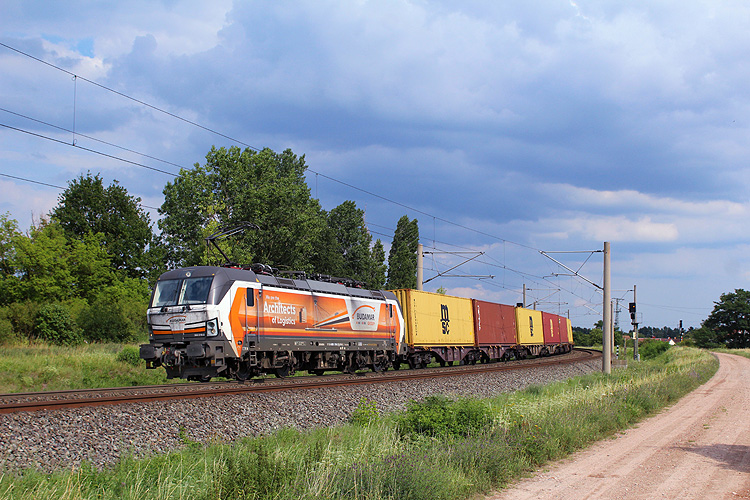 HSL 186 364 hatte den umgeleiteten Lkw-Walter-KLV Bratislava - Rostock Seehafen am Haken. |