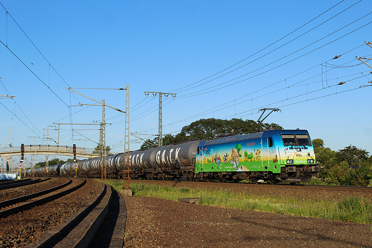 HSL 185 642 hatte einen Kesselzug von Magdeburg Rothensee nach Hamburg am Haken. |