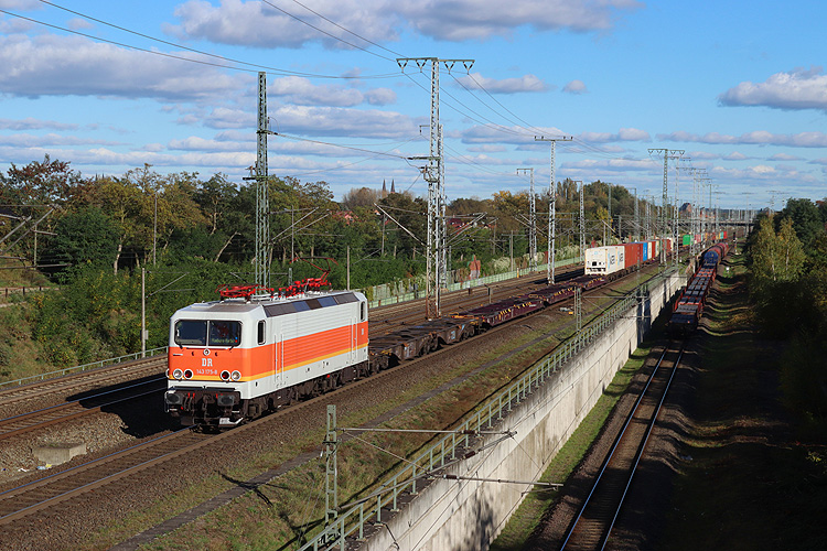 EGP 248 998 fuhr mit einem Dünger-Containerzug in Richtung Wittenberge. |