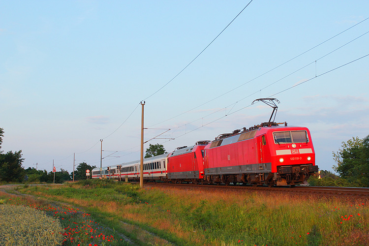 |  | 120 119 folgte mit dem umgeleiteten PbZ 2496 Berlin - Hamburg, in dem 101 042 eingestellt war, |