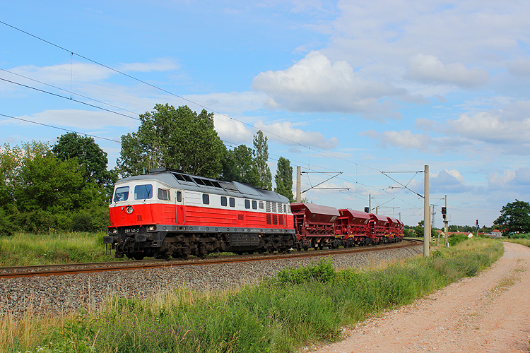 |  | Am 02.07.2020 fuhr WFL 232 141 mit einem Schotterzug in Richtung Wittenberge. |